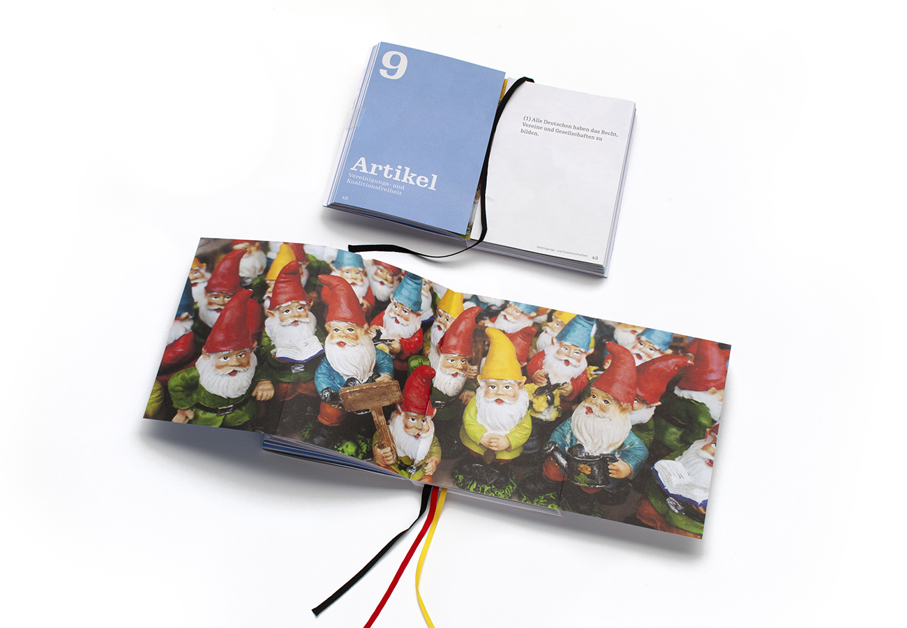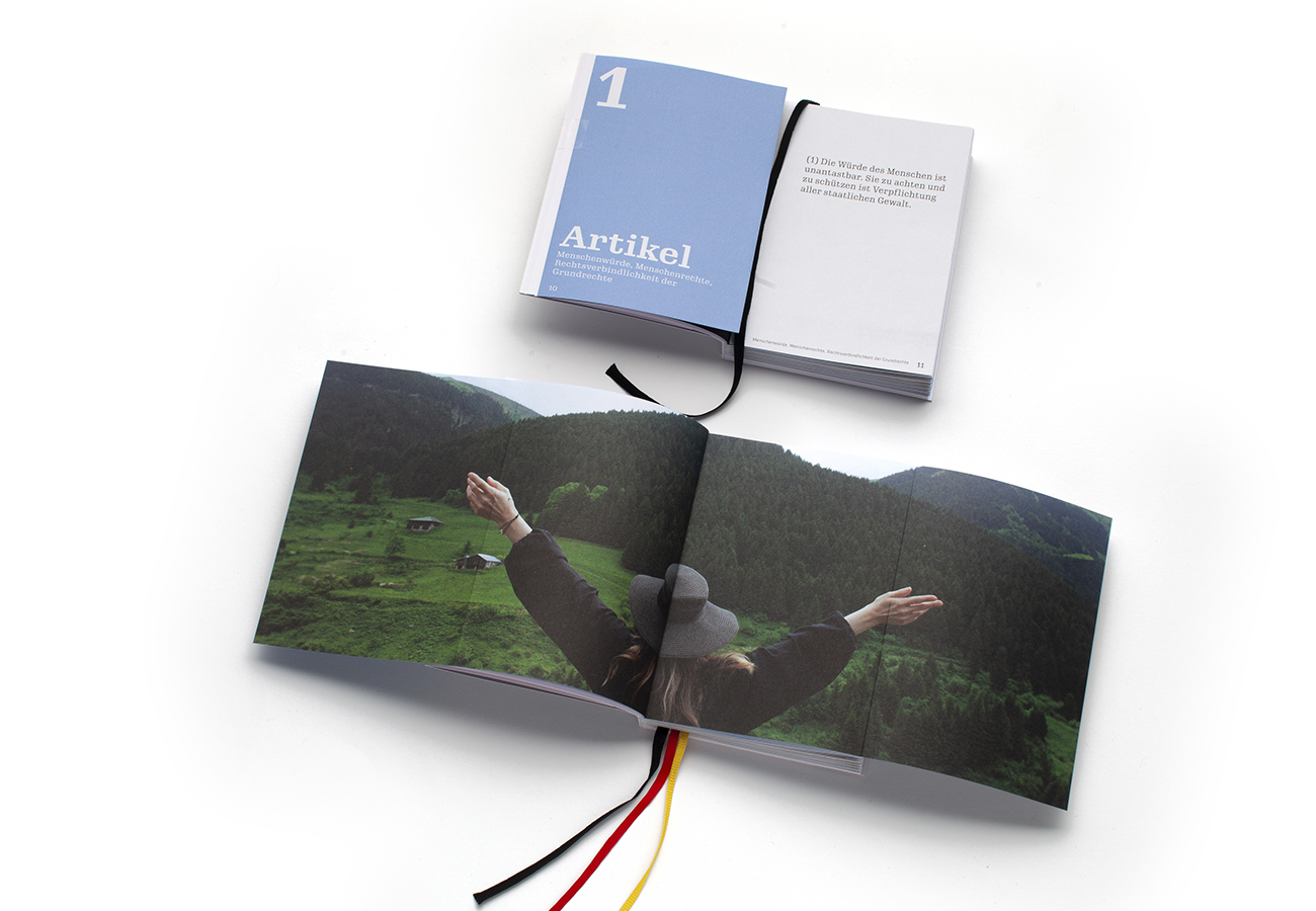 Die Neugestaltung unserer Verfassung möchte alle dazu einladen, das Grundgesetz nicht nur als juristisches Nachschlagewerk zu sehen und nachzulesen – sondern auch das Lebensgefühl hinter dem jeweiligen Artikel zu erfahren. Wir hoffen, unser neues Grundgesetz wird damit zum attraktiven Begleiter an Ihrer Seite und Teil Ihres Alltags. Vielleicht erhält es sogar einen Lieblingsplatz in Ihrem Regal. Oder wird zu Ihrem Coffee-Table-Book – und damit auf den ersten Blick sichtbar.
